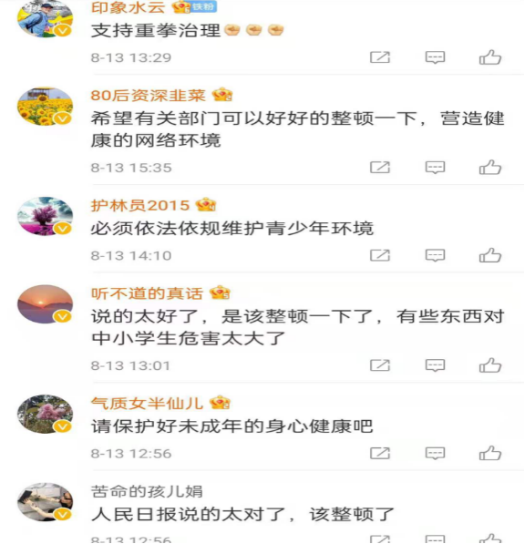 今日消息一出,网友呼声一片,支持整治,还网民绿色上网环境。