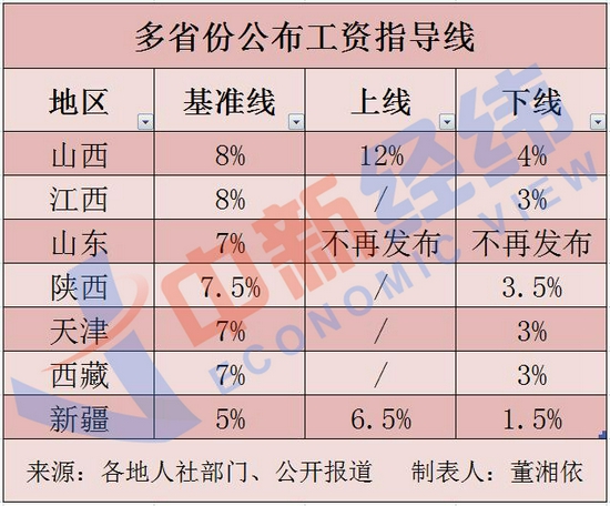 近日,山西公布企业工资指导线,据中新经纬客户端不完全统计,今年以来,山西、山东、江西、陕西、天津等7个省区市发布了2021年的企业工资指导线。值得注意的是,多地未设工资指导线上线。
