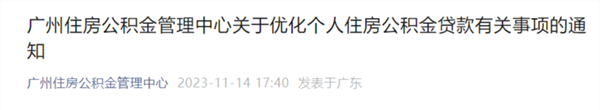 11月14日,广州住房公积金管理中心发布《关于优化个人住房公积金贷款有关事项的通知》。