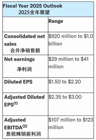 1、 直销业务的净销售额预计为7.75亿至8.4亿美元;