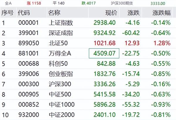 12月18日上午,A股市场整体小幅低开:上证指数跌0.2%,深证成指跌0.41%,创业板指跌0.5%。上午市场持续震荡,截至发稿,超4000只个股飘绿,主要指数中仅北证50飘红。