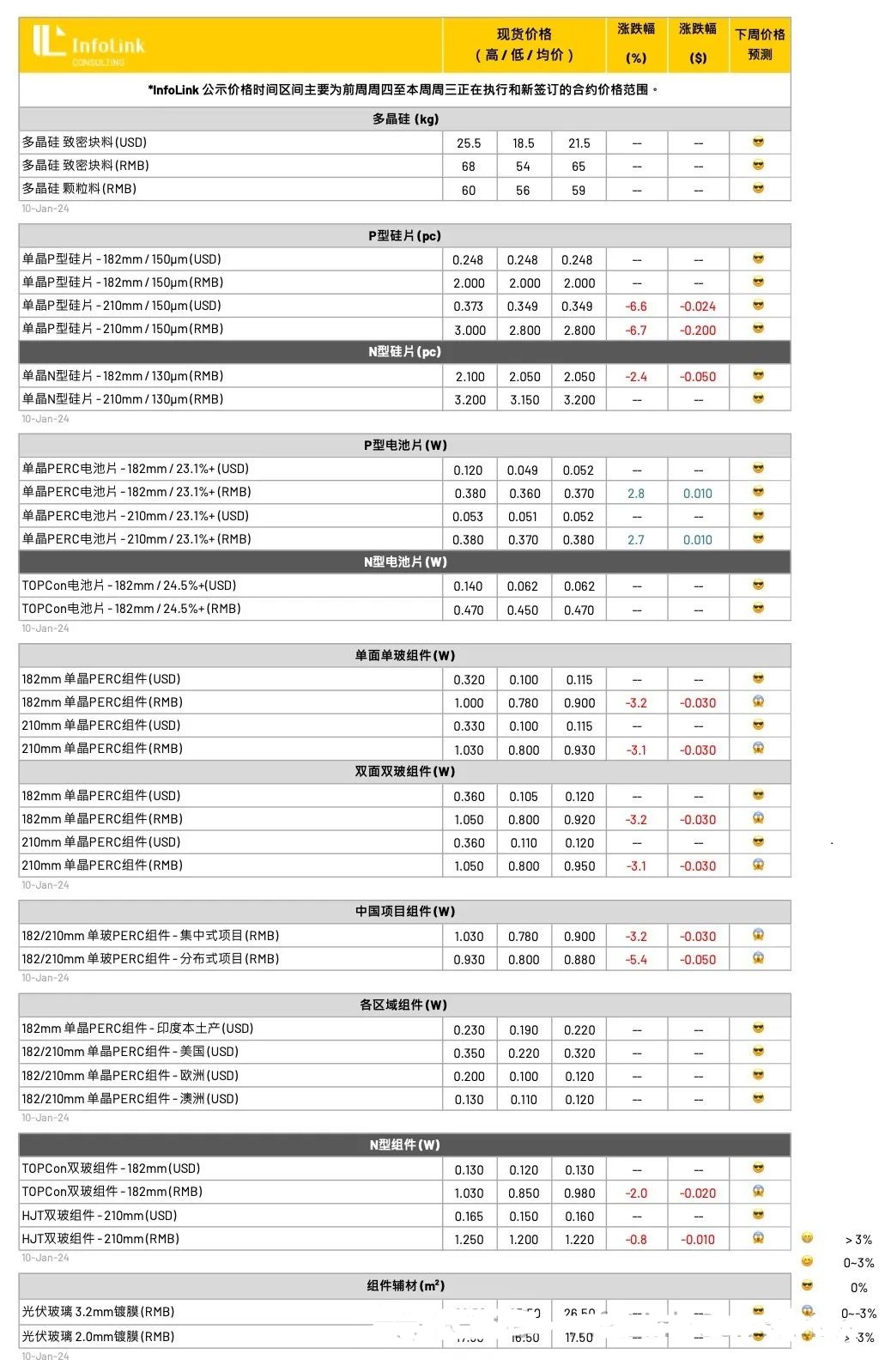 展望后势,尽管在当前价格下厂家仍缺乏盈利能力,本周电池价格的反弹仍给予了该环节生产企业一线曙光,结合当前行业低位库存水平与减产规划的判断,后续价格仍有望呈现「微幅」的上行,实际的价格走势仍将需关注组件厂家的接受程度。