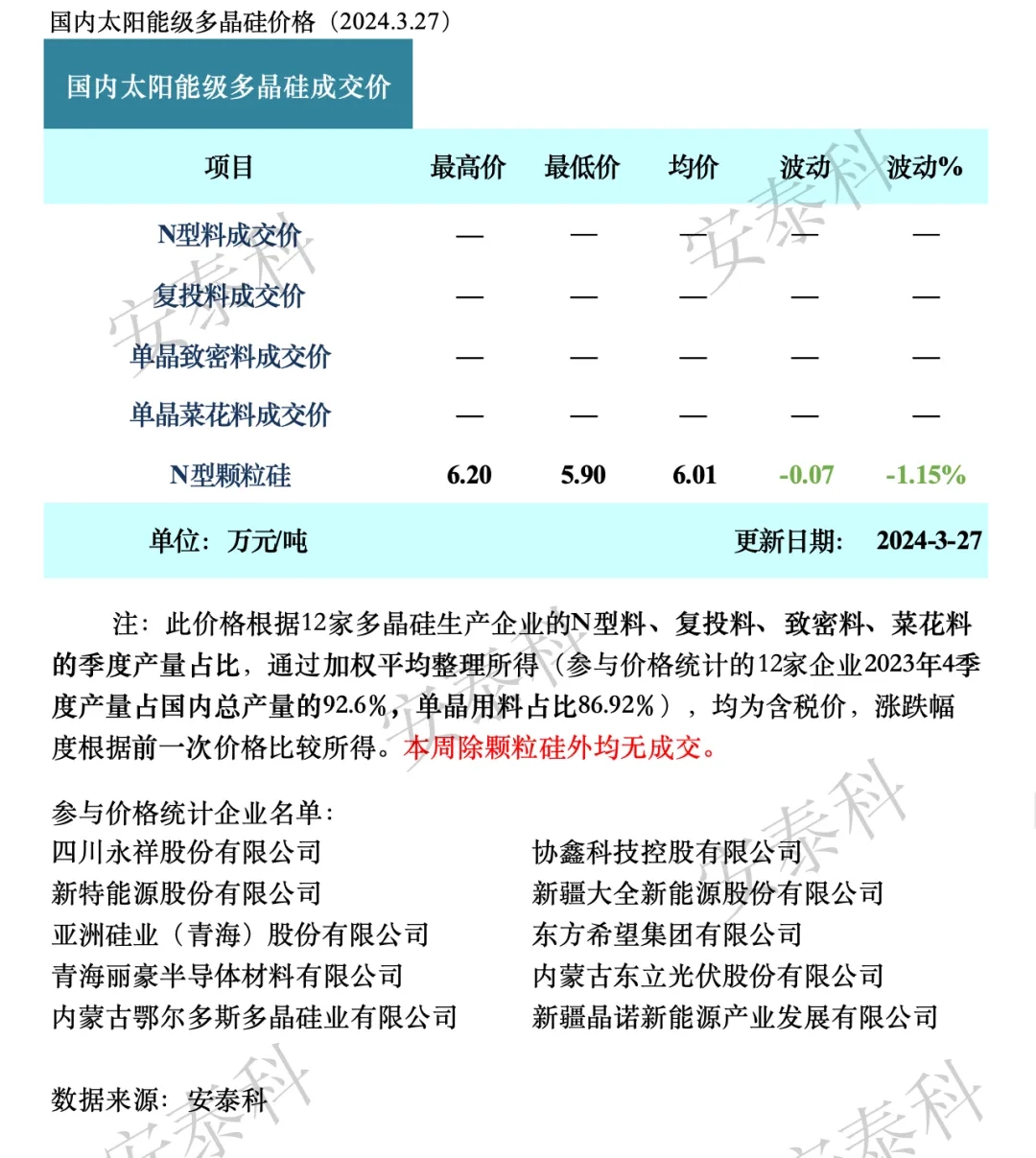 本周除颗粒硅外均无成交