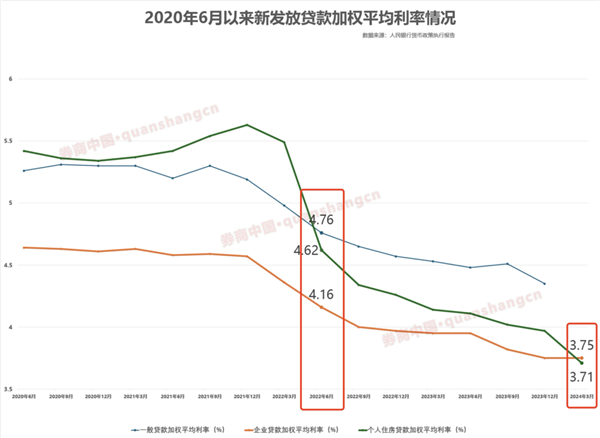 其中,3月份新发企业贷款加权平均利率为3.75%,比上月低1个基点,比上年同期低22个基点;新发个人住房贷款利率为3.71%,比上月低15个基点,比上年同期低46个基点。
