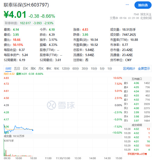 同期宣布遭证监会立案的联泰环保,上午股价一度触及跌停,截至发稿跌幅超8%。