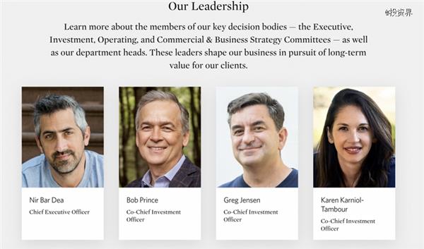 如今,桥水的核心管理团队共包括4人——CEO Nir Bar Dea ;以及三位联合首席投资官——年长的Bob Prince 、年轻的 Greg Jensen,以及去年初晋升的女掌门Karen Karniol-Tambour。
