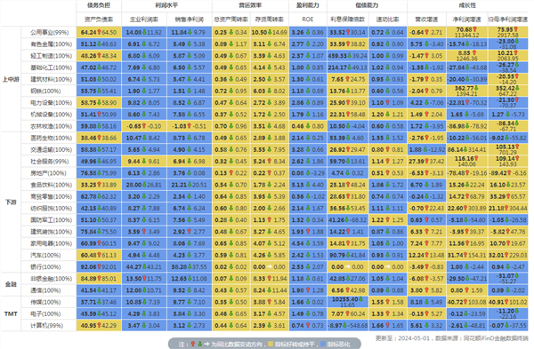 行业财务指标同比变动