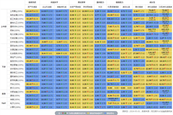 行业财务指标同比变动