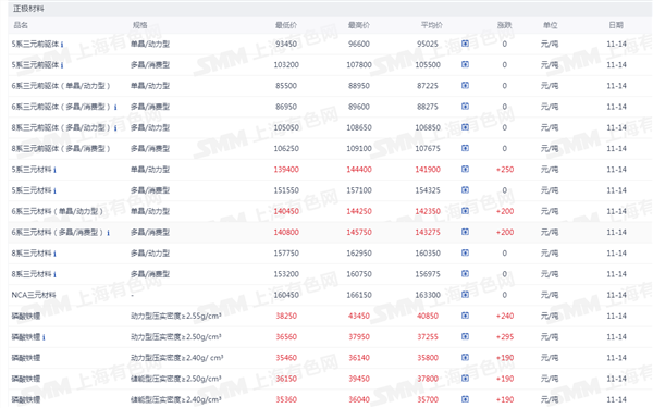 正极材料价格