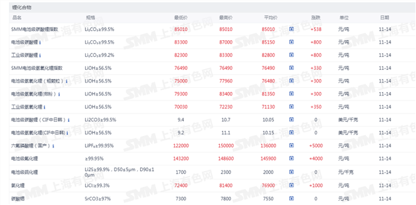 锂化合物现货价格