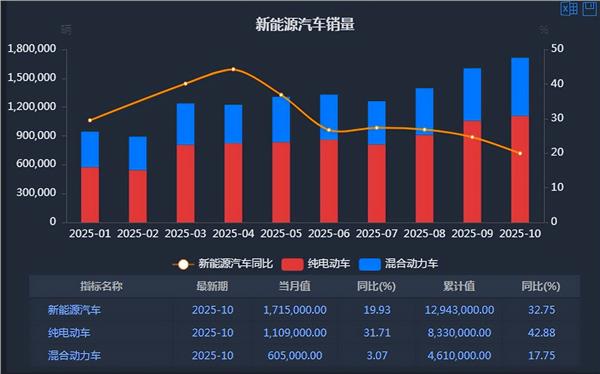 中汽协:10月我国新能源汽车销量首次超总销量50%