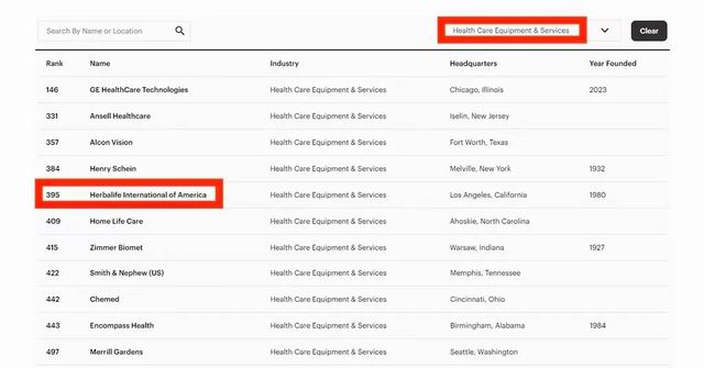 康宝莱成为了唯一入围榜单的直销企业,在全部500家入围公司中排名第395位;在健康护理和健康服务品类入围的11家企业中,康宝莱排名第5。