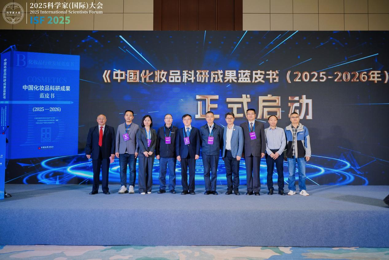 图为《中国化妆品科研成果蓝皮书(2025-2026年)》启动仪式现场。